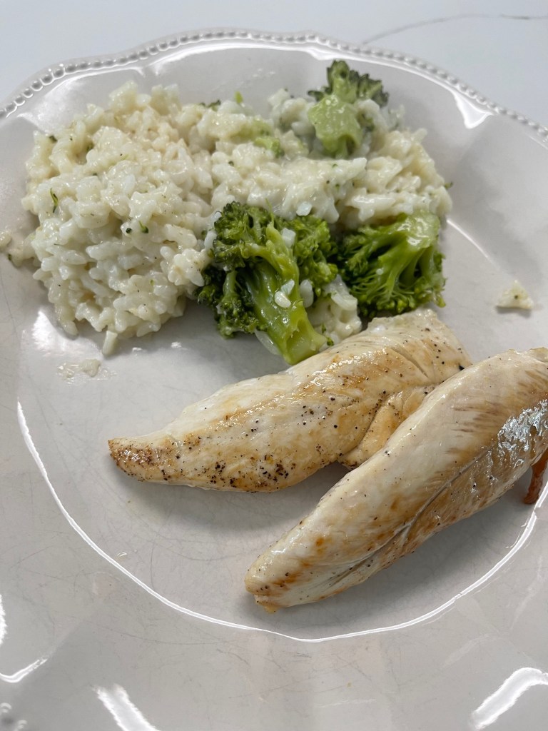 Night Two: One of my favorite instant pot recipes: parmesan risotto! We had steamed broccoli mixed into this and served it with some chicken cooked in avocado oil, seasoned with lemon juice, salt and pepper.