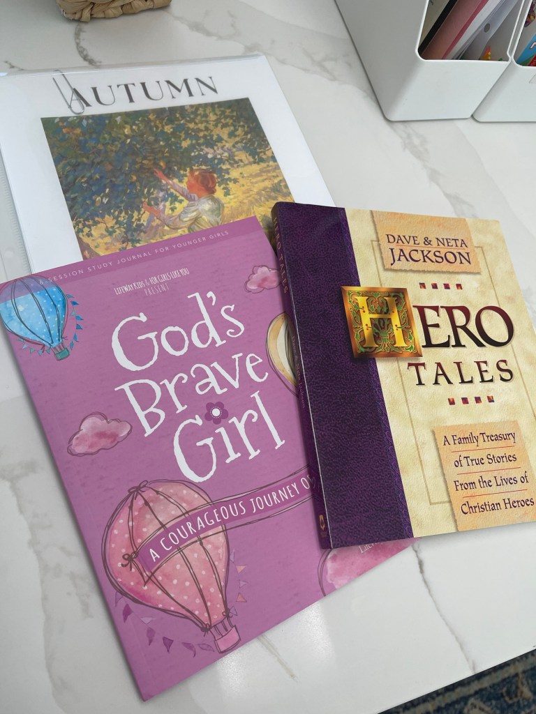 Bible: We are reading through the book of Ruth this semester, as well as memorizing six different verses and learning about a Christian historical figure by reading through Hero Tales: A Family Treasury of True Stories From the Lives of Christian Heroes by Dave and Neta Jackson. For my second-grader, I want to help her form a habit of personal daily study in this area, so I purchased an age-appropriate workbook to go through with her.