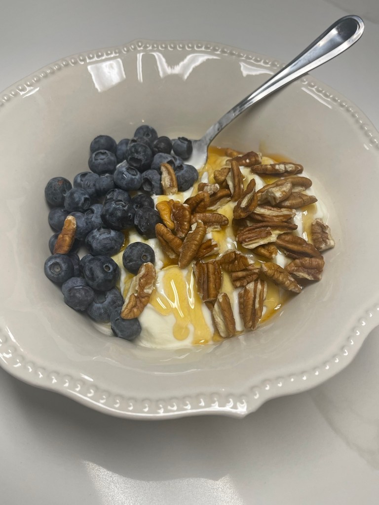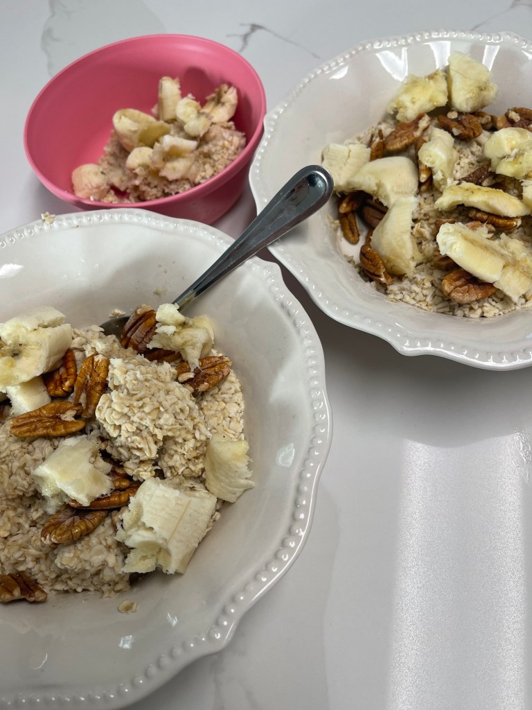 I rotate and variate these three breakfasts like crazy around here, especially in the summer! Yogurt bowls, oatmeal bowls, and eggs + fruit. If I don’t give my kids a pretty hearty breakfast, they ask me for snacks by 9am. To really punch out the oatmeal, I melt a tablespoon of butter into each serving, make it with milk instead of water, and top with fruit and nuts.