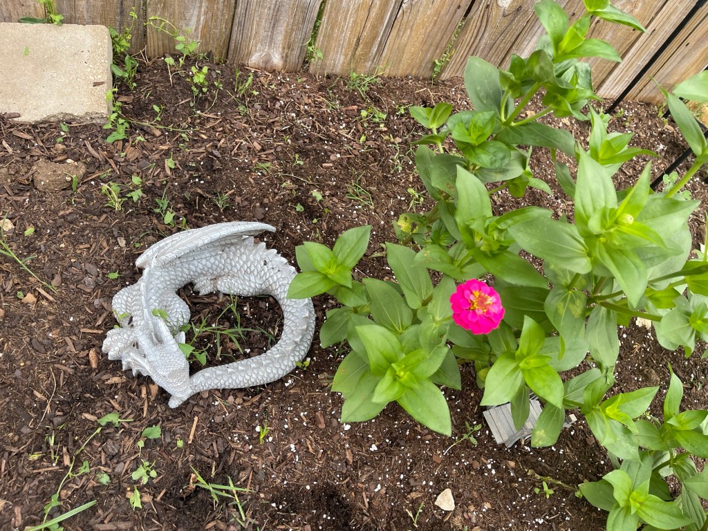 For the finishing touch (for now), I added a little sleeping stone dragon my kids have affectionately named Rodney.