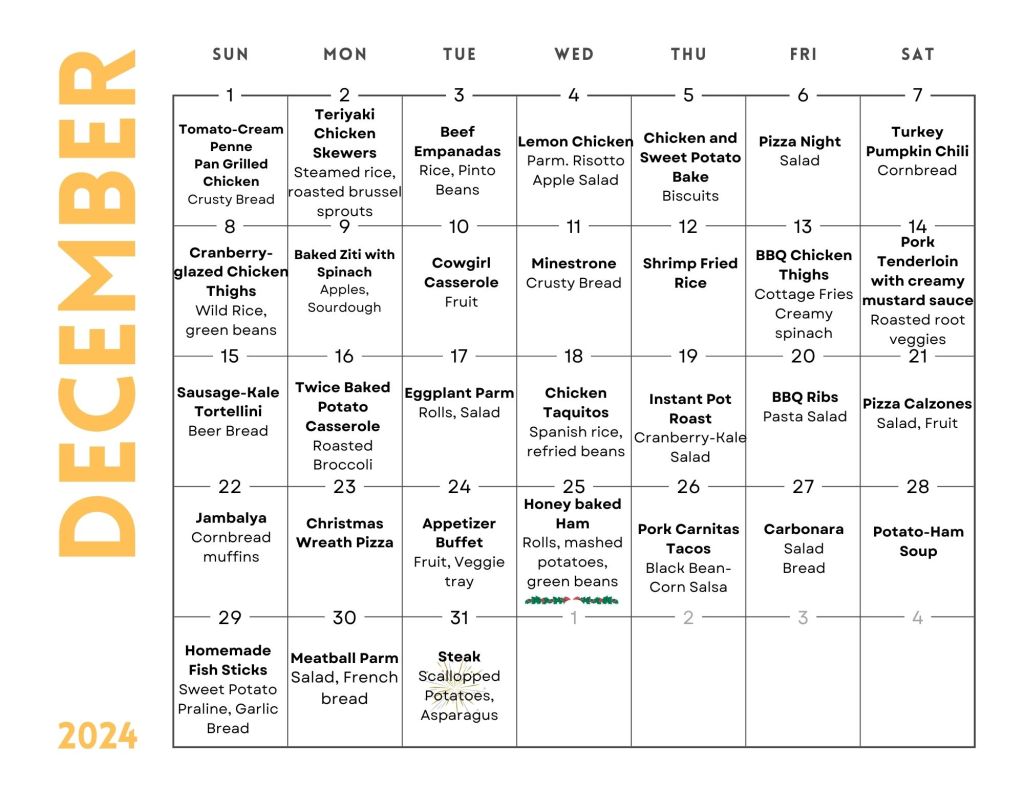 I made dinner plans so you don’t have to! December has so much holiday fun in it, so I tried to reflect that in this month’s dinner menu.