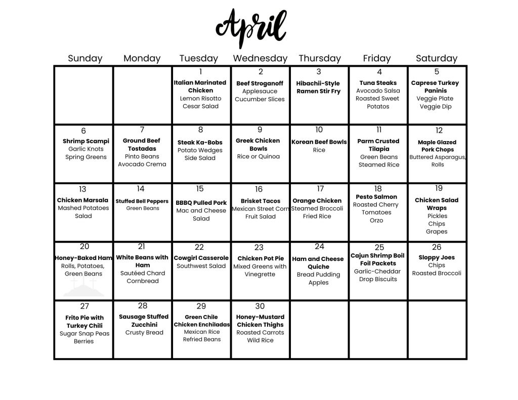 Here it is, friends! The seventh straight month that I’ve done the meal planning so you don’t have to. I did a more seafood this month, keeping in mind that some of you might be observing Lent.