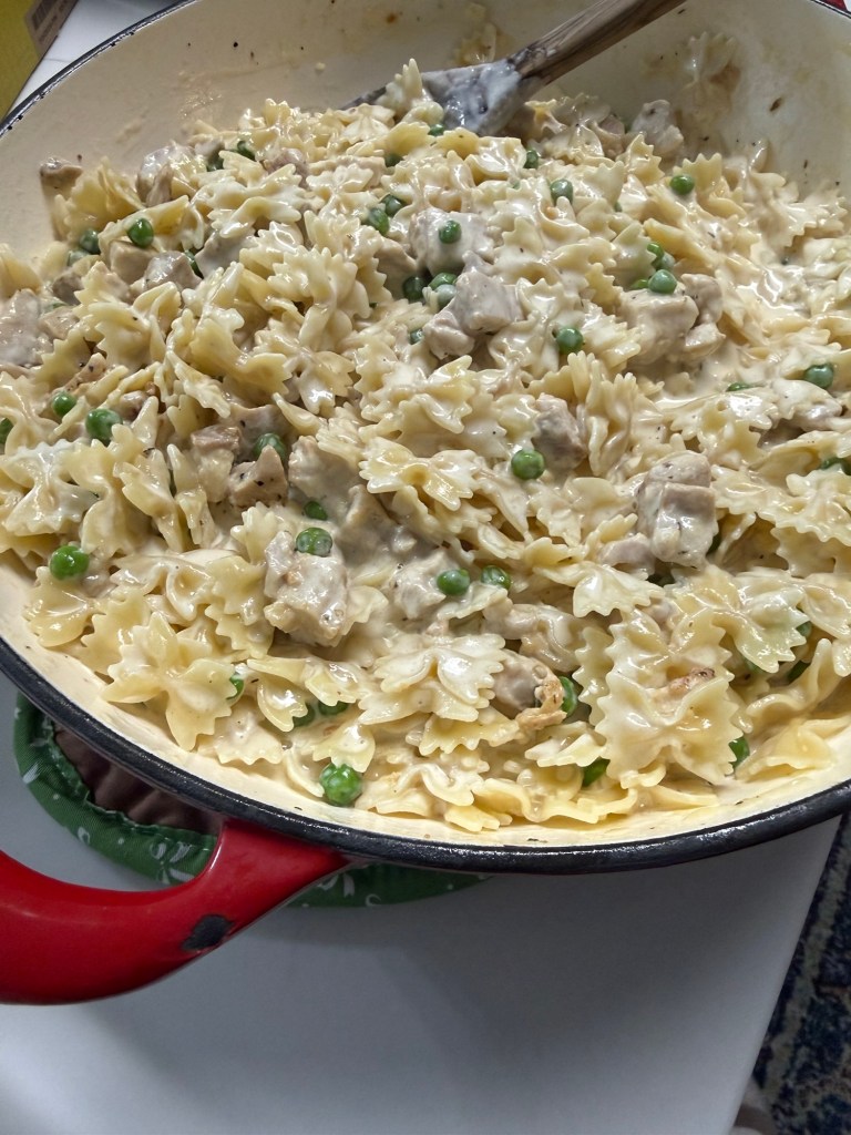 This is one of those meals that is pure comfort to my family, plus it comes together quickly on a weeknight. Think: easiest alfredo sauce you’ve ever made. I want you to keep an open mind: there will be a lot of cream, but this does make a lot of food.