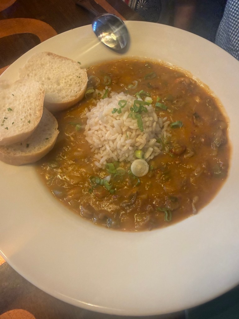 We stopped for another beignet at The Vintage, then later walked to Mulate’s for dinner, where we heard live zydeco music, a genre rooted in Creole culture, blending African rhythms, French influence, and Louisiana storytelling.